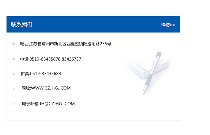 傳真:0519-83435688    郵編:213135    網址:WWW.czjhgj_com.njzhiyun.com    電子郵箱:JH@czjhgj_com.njzhiyun.com